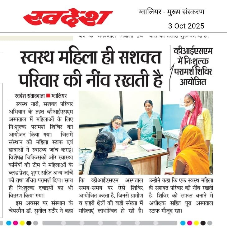 वीआईएसएम हॉस्पिटल में गुरुवार को स्वस्थ नारी, सशक्त परिवार अभियान के तहत महिलाओं के लिए निःशुल्क परामर्श शिविर का आयोजन किया गया।